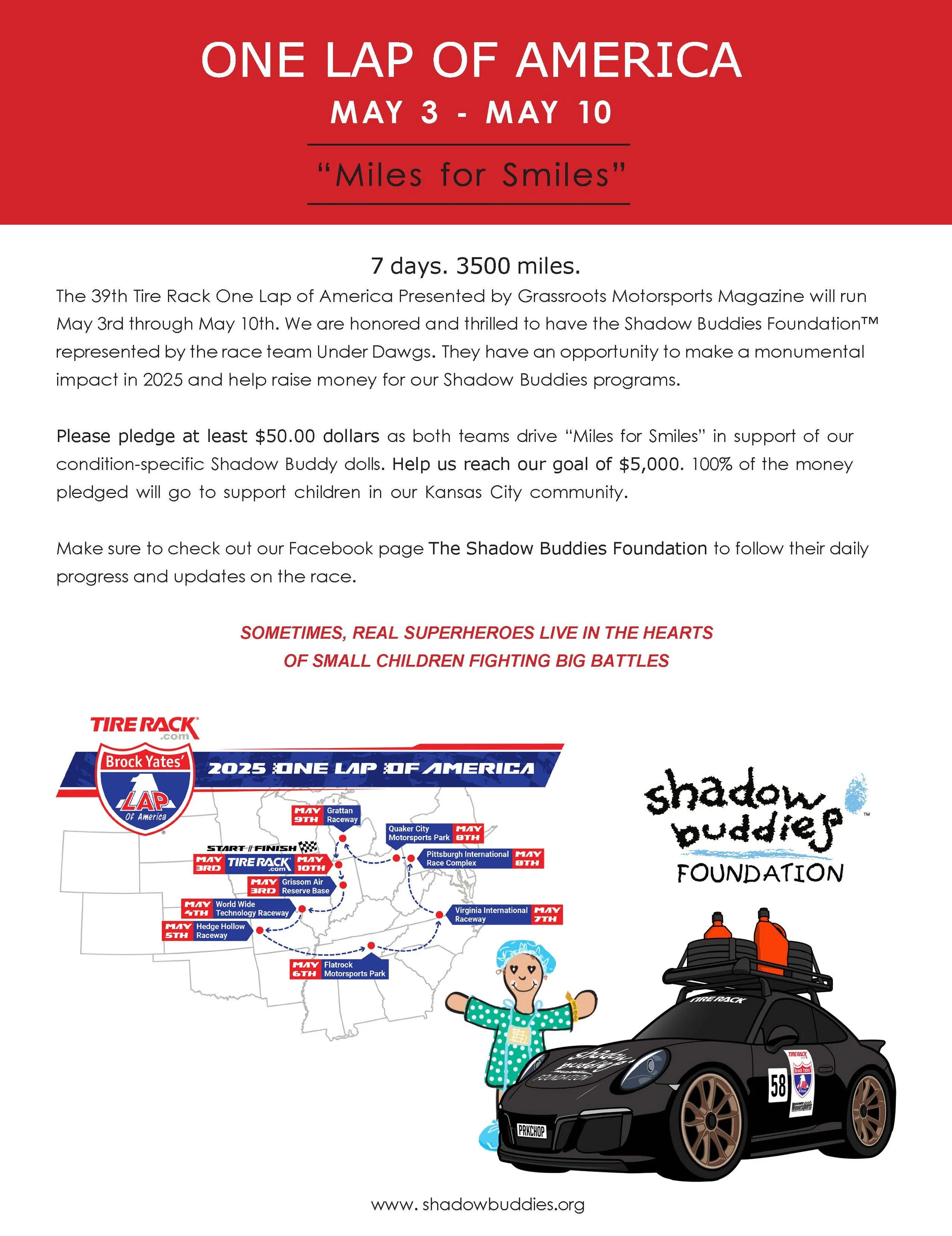 Sponsorship for $5,000 – first 5 donations of $5,000 get their name on the car